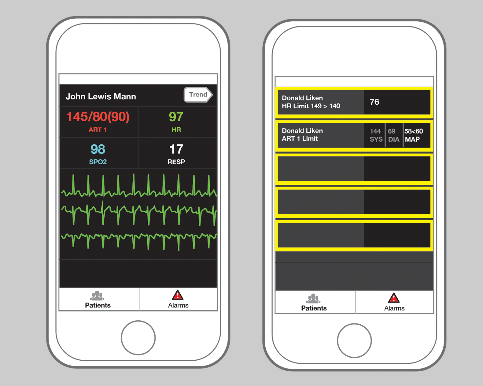 Features: Utilize primitive Cisco phone UI to incorporate patient data, alarms, and clinician (and room/bed) assigments
